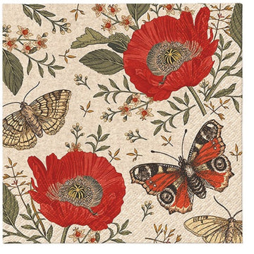 Flowers Napkins Poppies Decorative Floral Paper Decoupage Napkin #5229